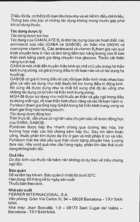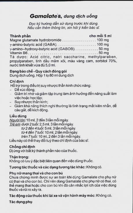 Chưa chứng minh được sự an toàn khi dùng Gamalate cho phụ nữ có thai và cho con bú. Chỉ nên dùng Gamalate cho phụ nữ có thai, có thể mang thai hoặc cho con bú khi đã cân nhắc lợi ích của việc dùng thuốc và rủi ro xảy ra.