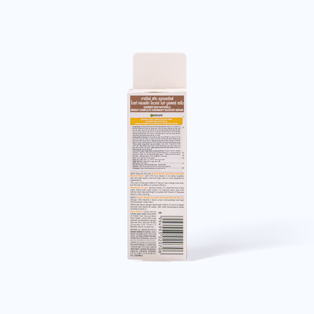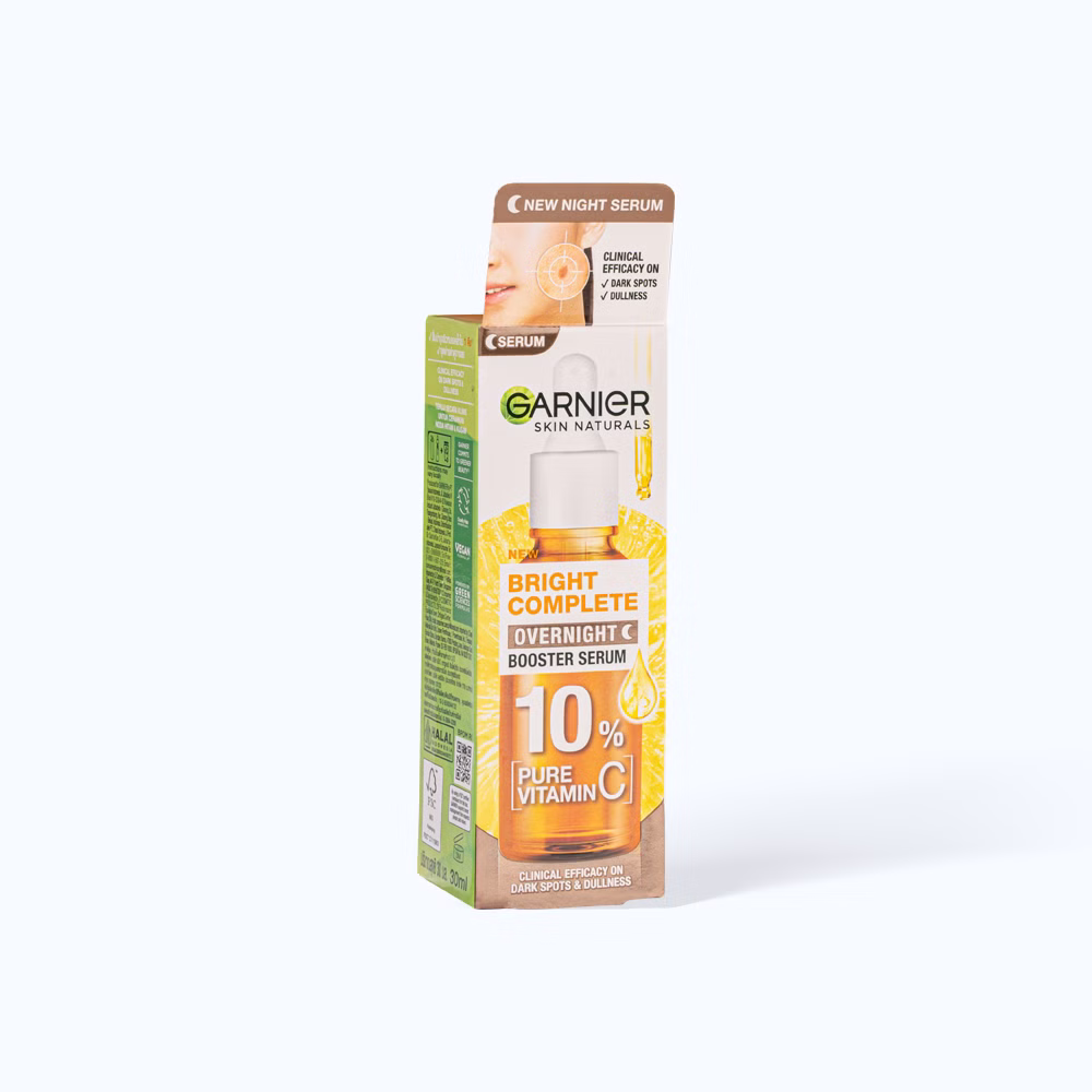 Tinh Chất Hỗ Trợ Sáng Da Và Mờ Thâm Garnier Bright Complete Pure Vitamin C là công thức vượt trội giúp dưỡng da hiệu quả vào ban đêm, giúp làm mờ thâm cho làn da trông sáng khỏe rạng rỡ hơn.