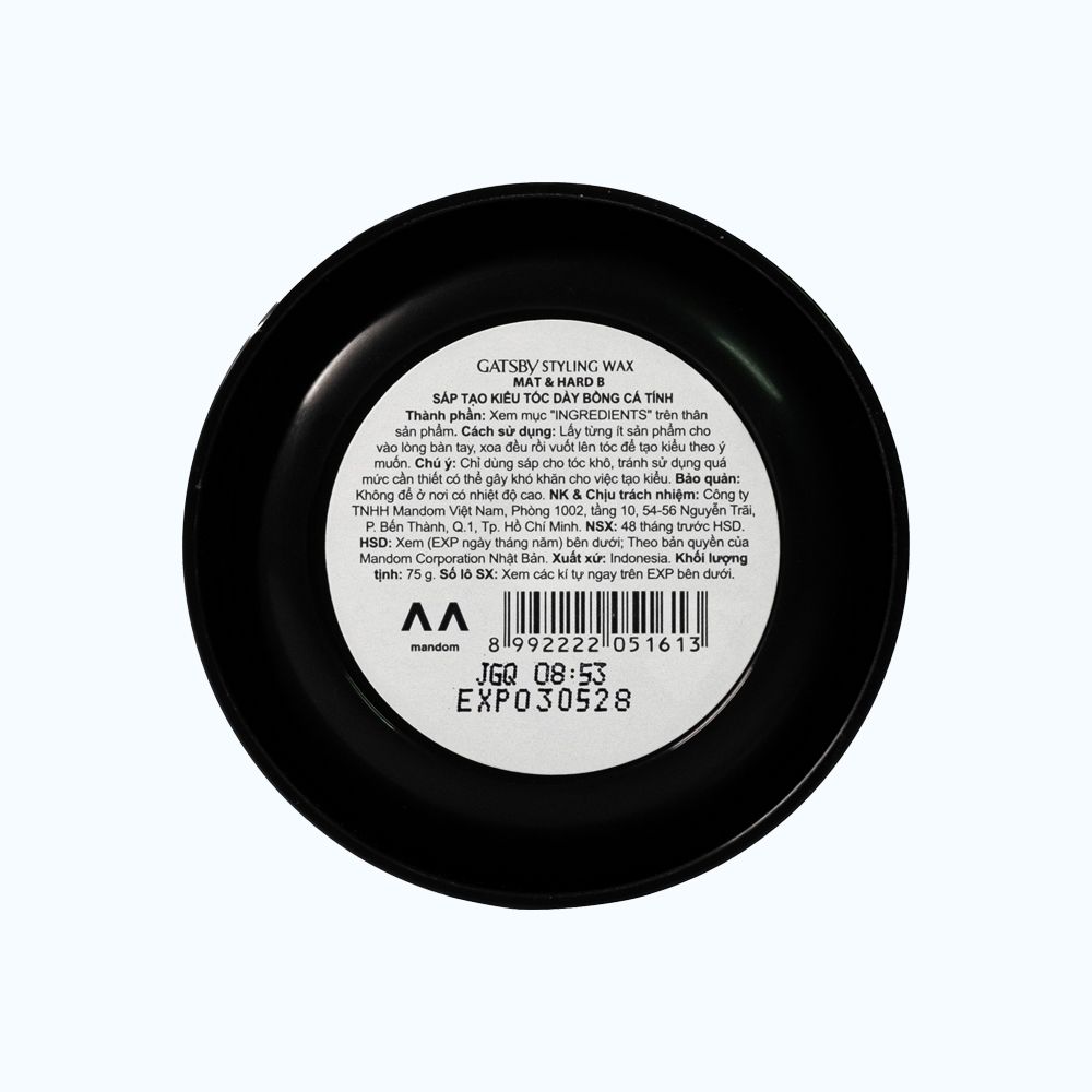 Gatsby Wax Tao Kieu Toc Mat & Hard 75g là một sản phẩm sáp tạo kiểu tóc đến từ thương hiệu Gatsby. Với kết cấu mạnh mẽ và khả năng giữ nếp lâu dài, sản phẩm này giúp tạo ra các kiểu tóc có độ cứng và độ bám tốt. Thích hợp cho việc tạo kiểu tóc dày và tạo hình rõ ràng, Gatsby Wax Tao Kieu Toc Mat & Hard cung cấp độ cứng và sự kiểm soát tối ưu mà không làm tóc bị bóng nhờn. Với trọng lượng 75g, sản phẩm rất tiện lợi để sử dụng hàng ngày và dễ dàng mang theo.