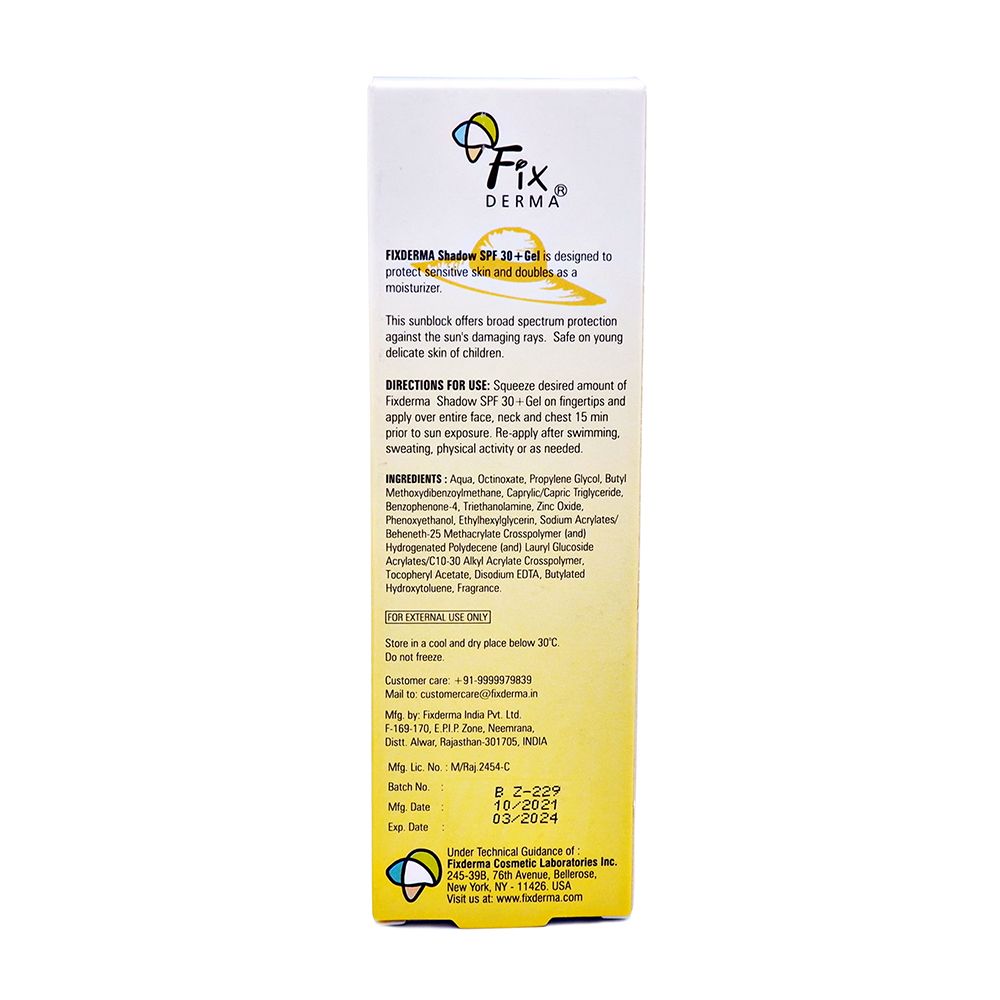 Gel chống nắng FIXDERMA Shadow SPF 30+ Gel là một công thức lý tưởng cho da nhờn và dễ nổi mụn. Là hỗn hợp chống nắng vật lý và hóa học, nó mang lại một lớp che phủ hoàn chỉnh mà không gây ra bất kỳ biểu hiện xấu nào cho da. Công thức hoàn toàn không gây mụn.