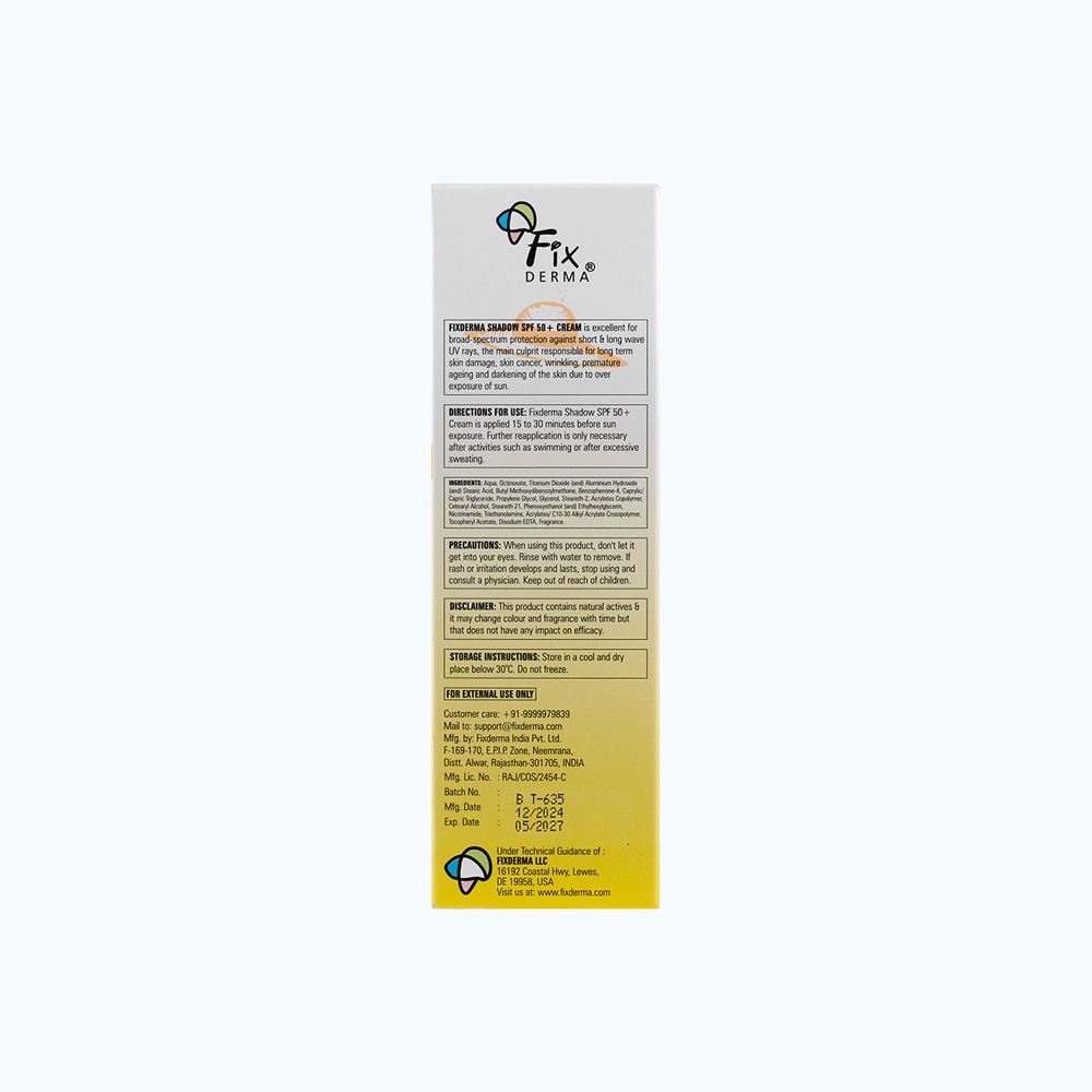 Fixderma Shadow SPF 50+ Cream giúp chống nắng và dưỡng ẩm, giúp bảo vệ da trước tác hại của ánh nắng mặt trời.