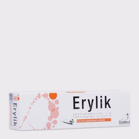 Erylik là gel bôi ngoài da của nhà sản xuất Laboratoires Chemineau (Pháp), chứa thành phần chính erythromycin và tretinoin, dùng để điều trị tại chỗ mụn trứng cá mức độ trung bình.