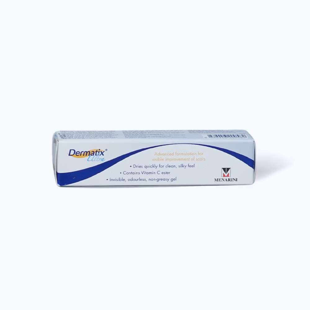 Dermatix Ultra là sản phẩm hỗ trợ làm mờ sẹo được sử dụng rộng rãi trên thị trường hiện nay. Với công nghệ CPX tiên tiến giúp làm phẳng và làm mềm sẹo, chứa Vitamin C Ester giúp làm mờ sẹo. Gel Ultra đã chứng minh hiệu quả trong việc cải thiện hiệu quả sẹo lồi và sẹo phì đại gây ra do phẫu thuật, bỏng, vết cắt, vết cào xước, côn trùng cắn.