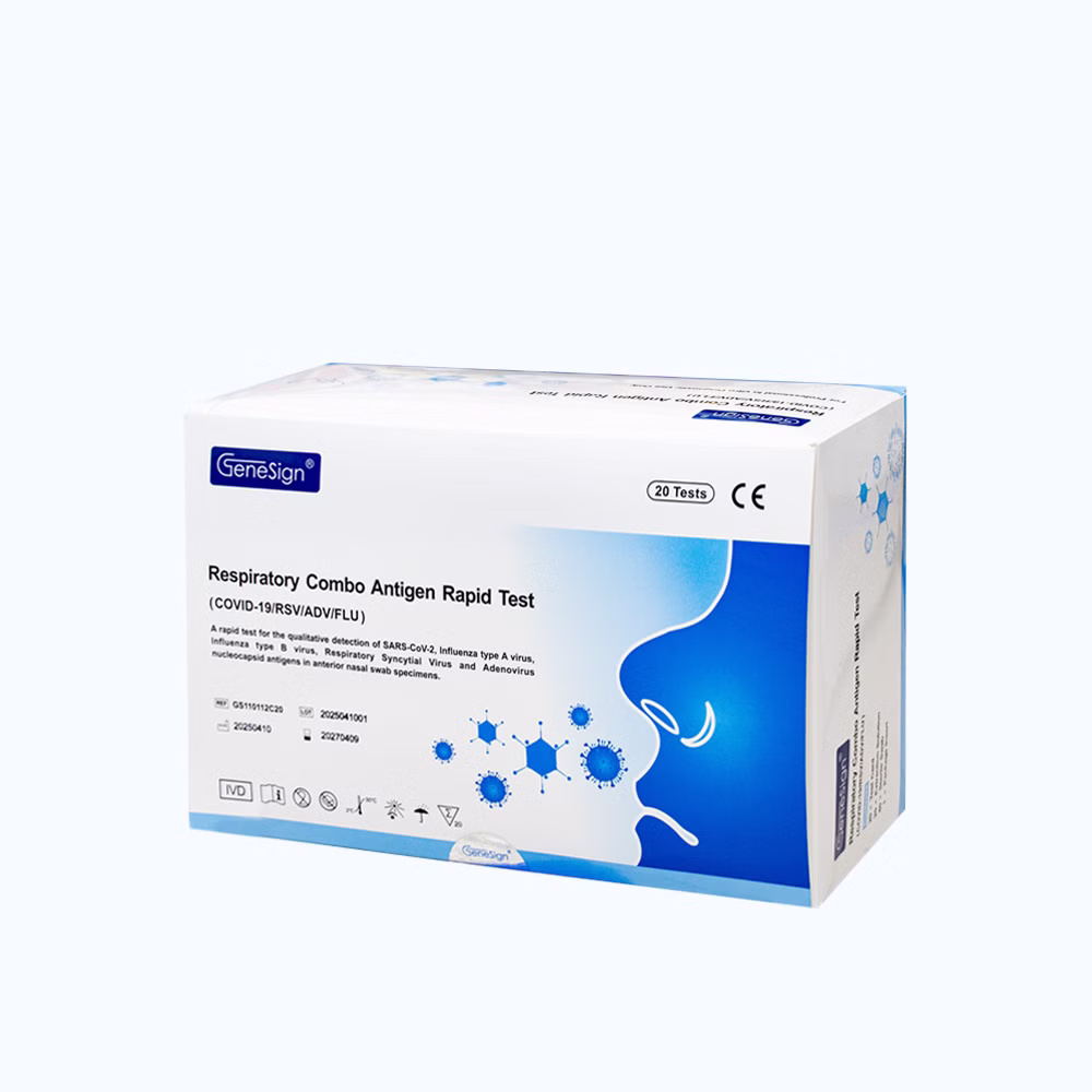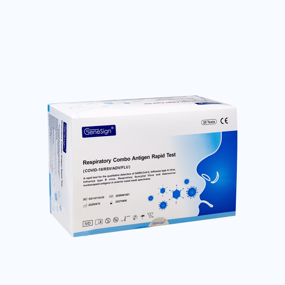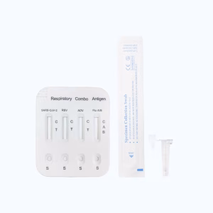 Respiratory Combo Antigen Rapid Test là xét nghiệm miễn dịch dòng chảy bên nhằm mục đích phát hiện và phân biệt định tính đồng thời, nhanh chóng kháng nguyên nucleocapsid trong chẩn đoán in vitro thông qua hội chứng hô hấp cấp tính nặng do coronavirus 2 (SARS-CoV-2), vi rút cúm A, vi rút cúm B, vi rút hợp bào hô hấp (RSV) và Adenovirus (ADV) trực tiếp từ các mẫu bệnh phẩm dịch tỵ hầu được lấy từ các cá nhân bị nghi ngờ nhiễm vi rút