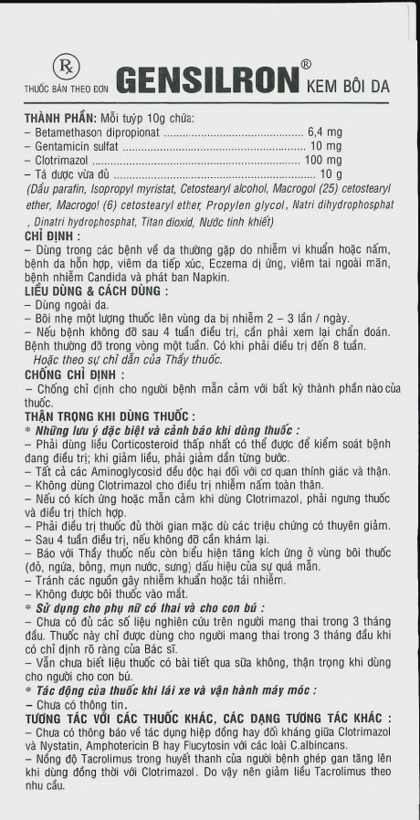 Thuốc dùng ngoài Gensilron 10g – S.Pharm trị bệnh ngoài da, nhiễm trùng do nấm, vi khuẩn (tuýp 10g)