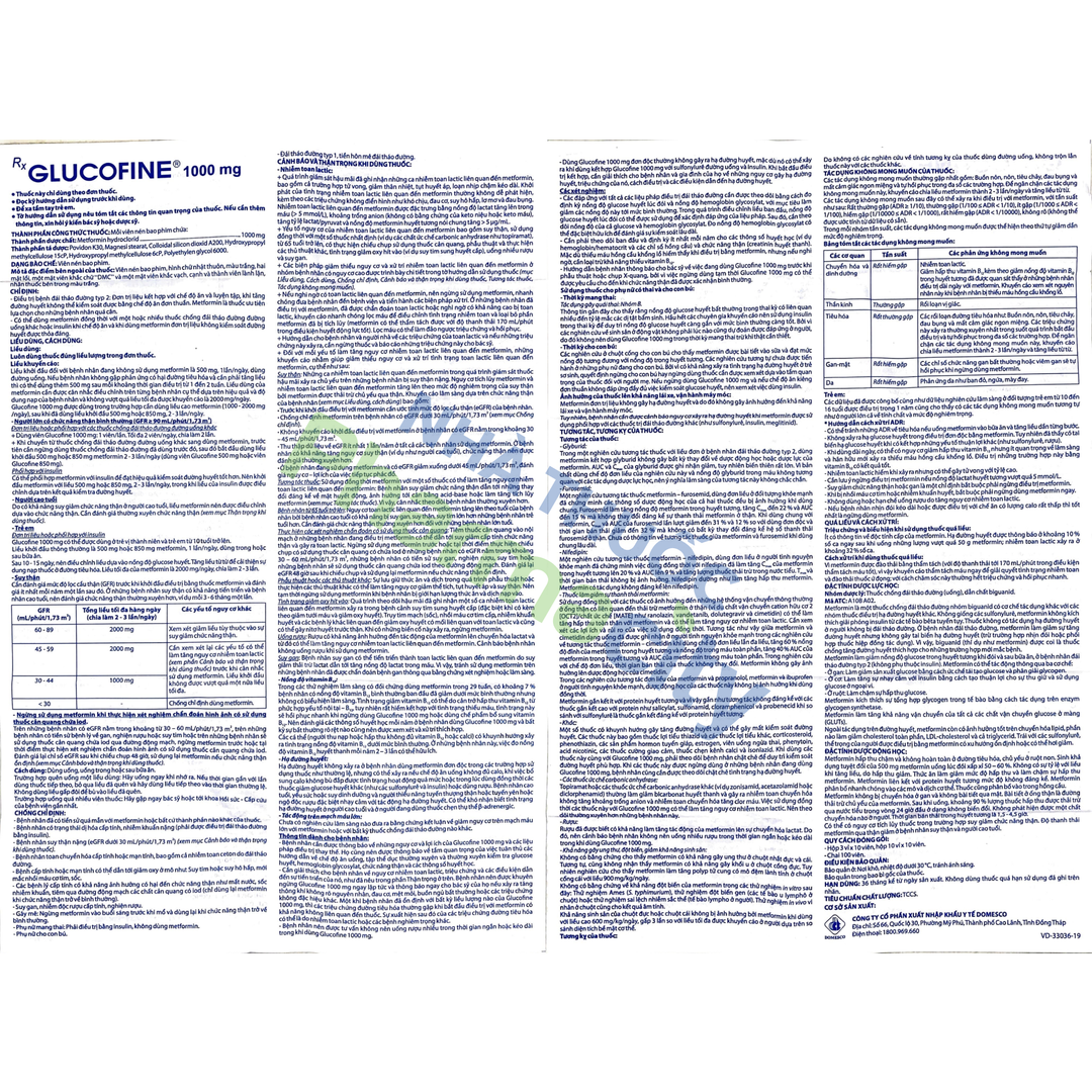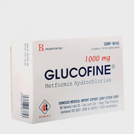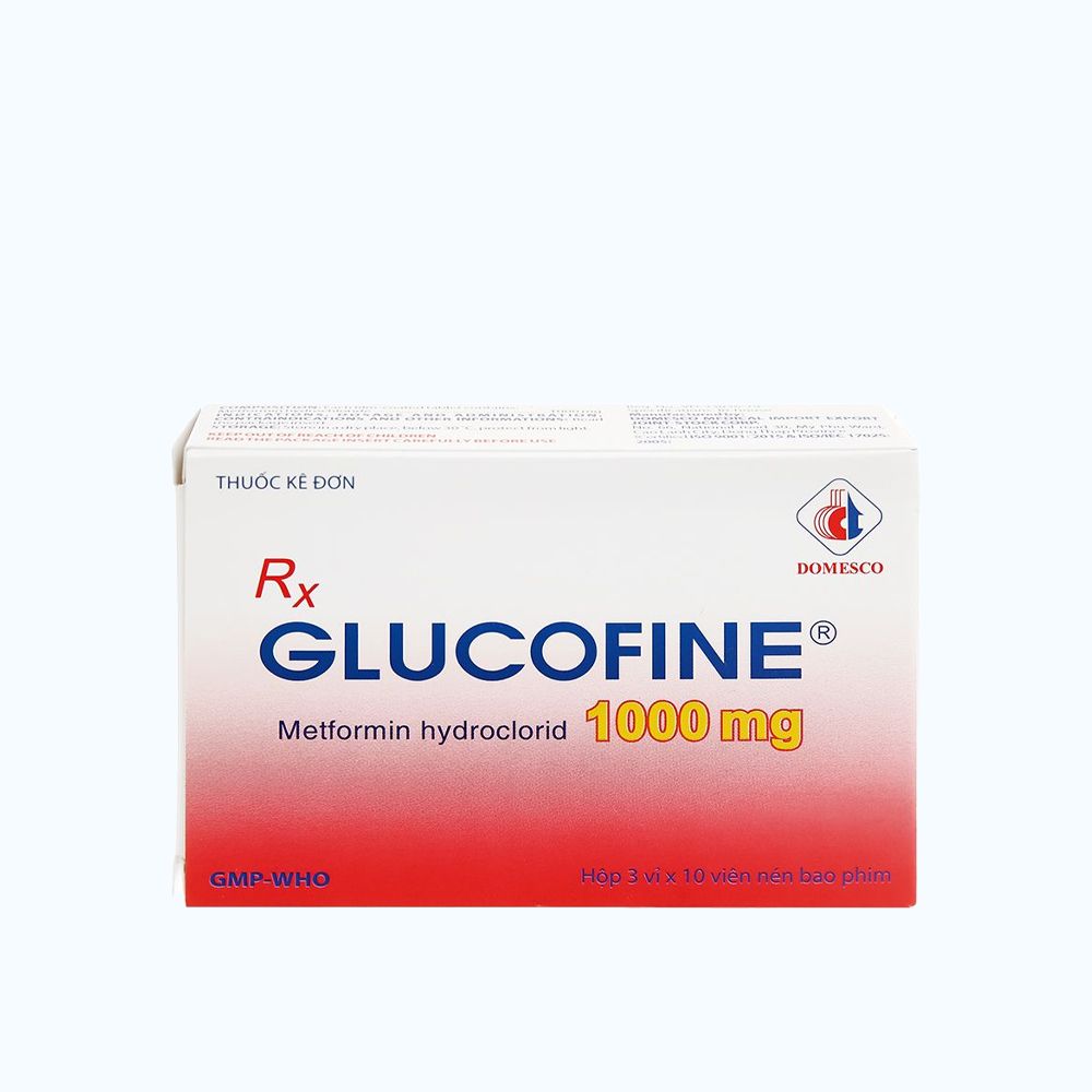Thuốc Glucofine 1000mg là sản phẩm của Công ty Cổ phần Xuất nhập khẩu Y tế Domesco, với thành phần chính Metformin hydroclorid. Đây là một loại thuốc được dùng để điều trị tiểu đường ở người trưởng thành (type II) kết hợp với chế độ ăn kiêng.