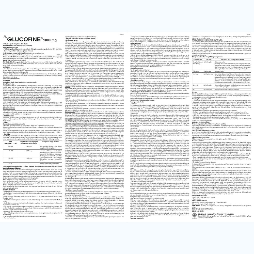 Tác dụng phụ Thuốc Glucofine 1000mg