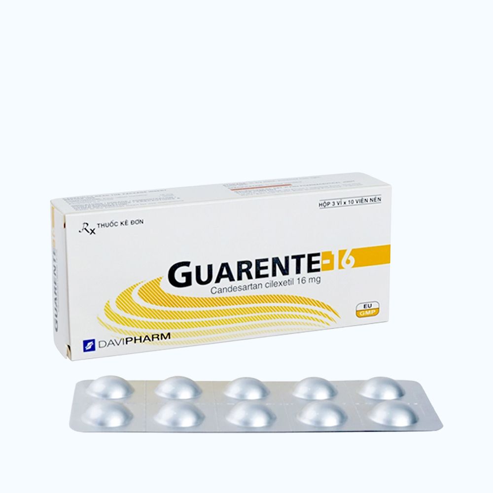 Mỗi viên thuốc Guarente 16mg, chứa: Candesartan cilexetil: 16 mg.