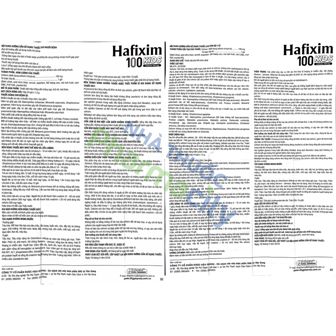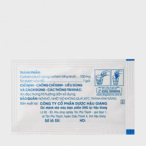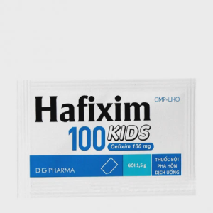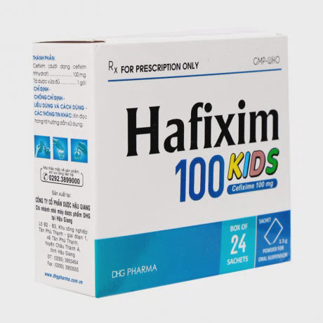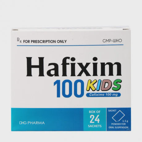 Bột Hafixim 100 Kids là một loại kháng sinh dạng bột dùng để pha chế dung dịch uống, được chỉ định điều trị các nhiễm khuẩn do vi khuẩn nhạy cảm với cefixim, đặc biệt là trong các trường hợp nhiễm khuẩn đường hô hấp và nhiễm khuẩn đường tiết niệu ở trẻ em