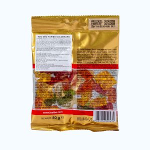 Si-rô glucose, đường, gelatin bò, dextrose, nước ép quả cô đặc (táo, dâu, phúc bồn tử, cam, chanh, dứa), chất điều chỉnh độ acid (acid citric), quả và quả nghiền cô đặc (hoa rum, tảo xoắn, táo, quả cơm cháy, cam, lý chua đen, kiwi, chanh, aronia, xoài, maracuja, nho đỏ), hương liệu tự nhiên (hương chanh, hương dâu, hương dứa, hương cam, hương phúc bồn tử, hương táo), hương liệu táo giống tự nhiên, dầu hướng dương, chất làm bóng (sáp ong (trắng và vàng)), chiết xuất quả cơm cháy. Sản phẩm này hông chứa bất kỳ gelatin lợn hay các thành phần từ lợn.
