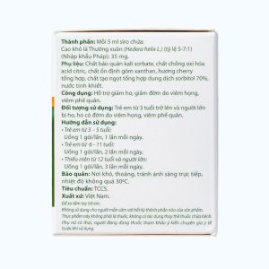 Cao khô lá Thường xuân (Hedera helix L.)(tỷ lệ 5-7:1) (Nhập khẩu Pháp): 35 mg