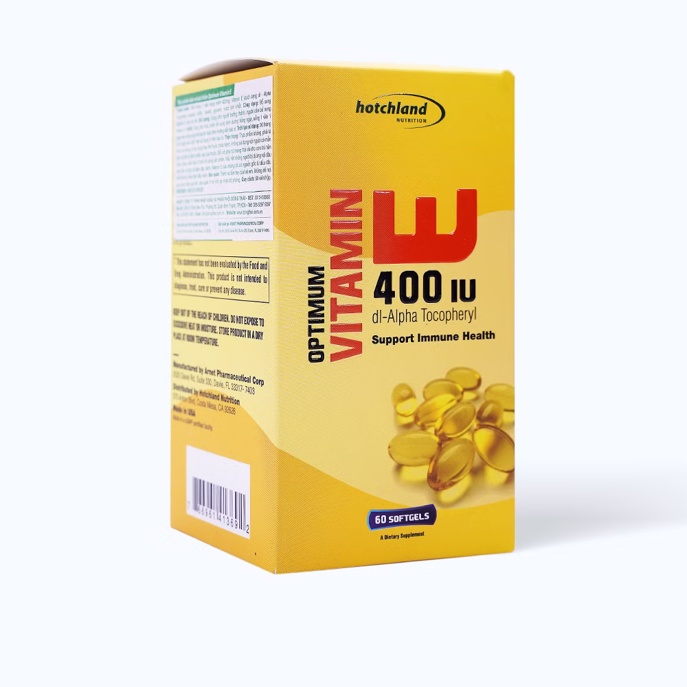 Viên uống Hotchland Optimum Vitamin E 400 IU là một loại thực phẩm chức năng cung cấp vitamin E cho cơ thể. Vitamin E là một chất chống oxy hóa mạnh, giúp bảo vệ tế bào khỏi sự tổn thương do gốc tự do gây ra. Ngoài ra, vitamin E còn có vai trò quan trọng trong việc duy trì sức khỏe của da, mắt và hệ miễn dịch.
