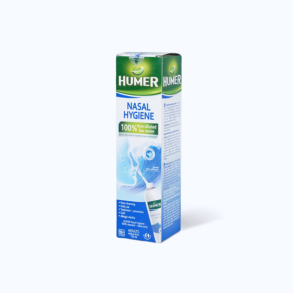 100% nước biển không pha loãng. Humer Nasal Hygiene là một dung dịch đẳng trương, vô trùng và không có chất bảo quản