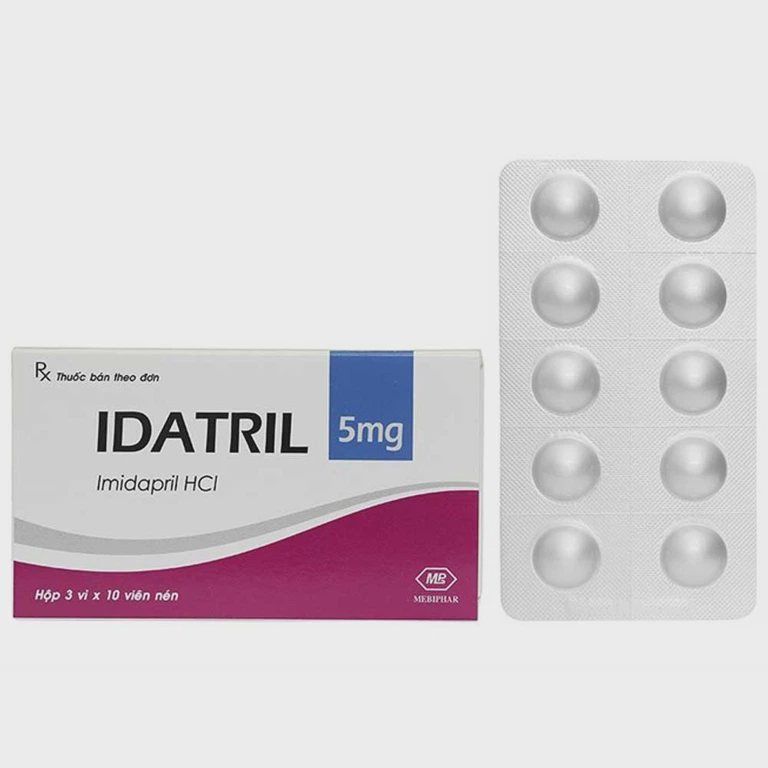 Idatril 5 của Công ty TNHH MTV Dược phẩm và Sinh học Y tế (Mebiphar), thành phần chính imidapril hydroclorid, thuốc dùng để điều trị tăng huyết áp và suy tim xung huyết giai đoạn ổn định huyết động.