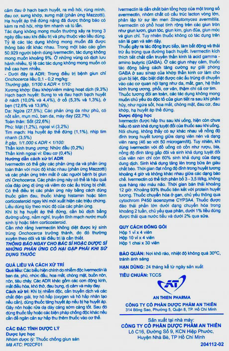 – Ivermectin là thuốc an toàn, rất thích hợp cho các chương trình điều trị trên phạm vi rộng.