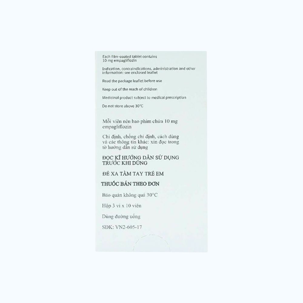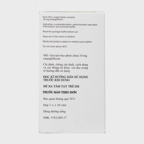 Các nghiên cứu EMPEROR bao gồm bệnh nhân suy tim với phân suất tống máu thất trái giảm (N=3726) hoặc với phân suất tống máu thất trái bảo tồn (N=5985) được điều trị bằng empagliflozin 10mg hoặc giả dược. Khoảng một nửa số bệnh nhân bị đái tháo đường týp 2.