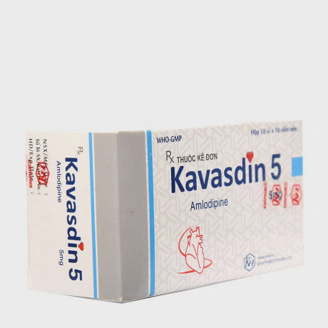 Viên nén Kavasdin 5 mglà một loại thuốc điều trị bệnh tăng huyết áp và dự phòng đau thắt ngực ổn định. Thuốc có chứa hoạt chất chính là Amlodipine, thuộc nhóm thuốc chẹn kênh canxi, giúp làm giãn mạch và giảm huyết áp.