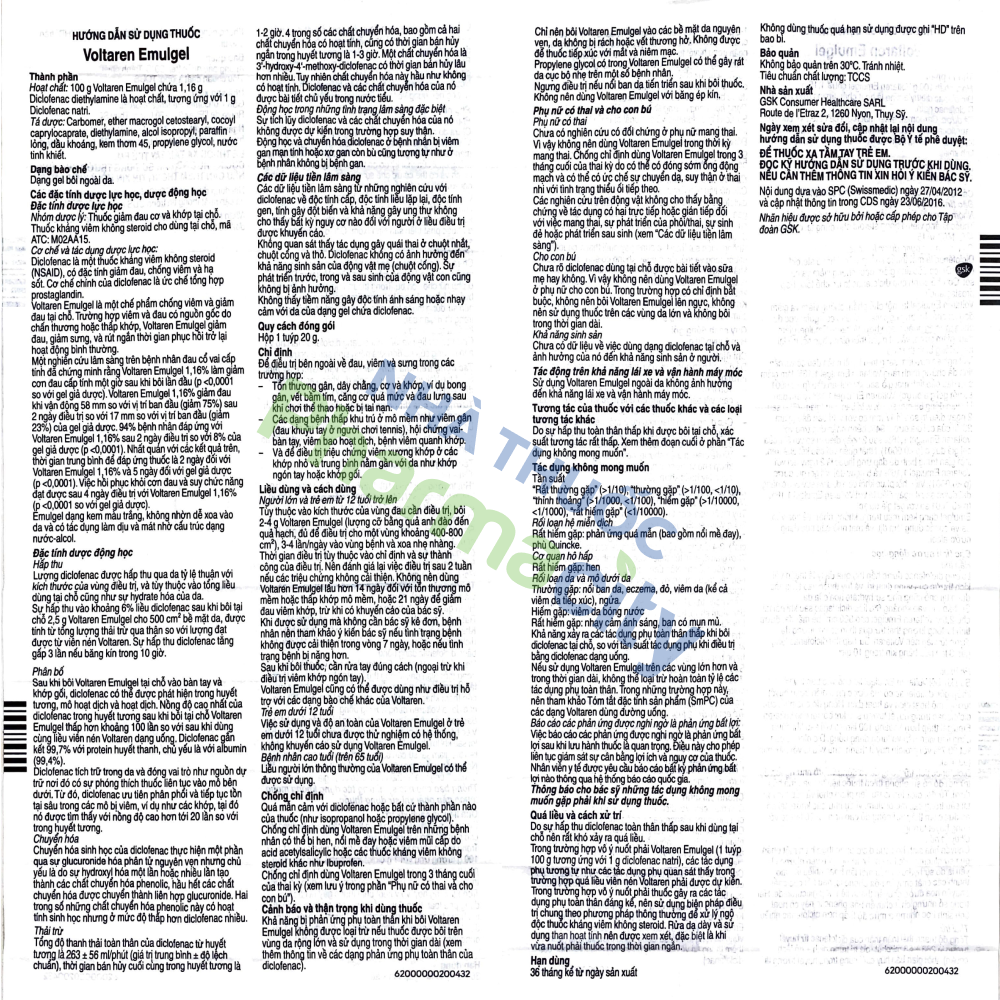 - Hoạt chất: 100g Voltaren Emulgel chứa diclofenac diethylamine 1.16g (tương ứng với diclofenac natri 1g).