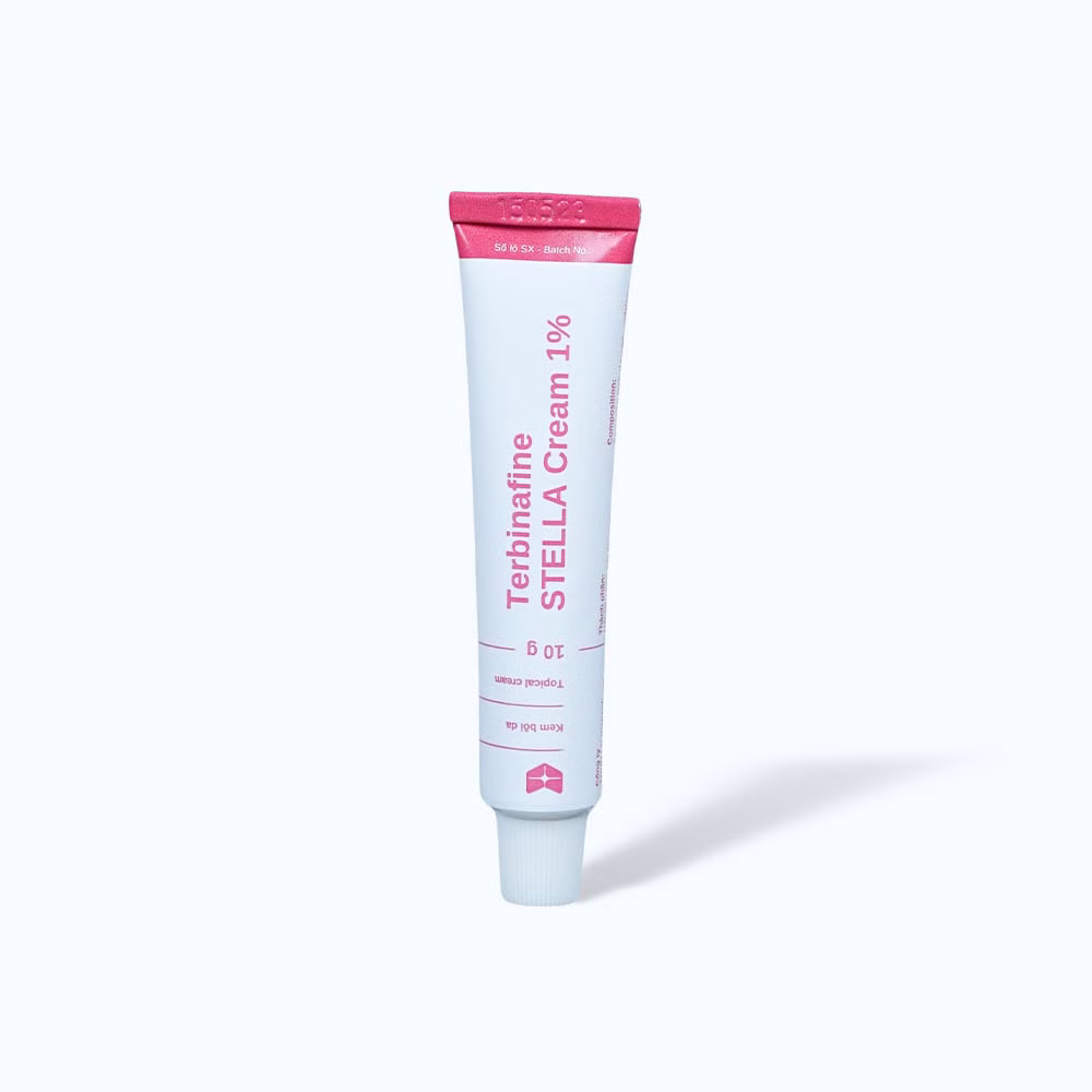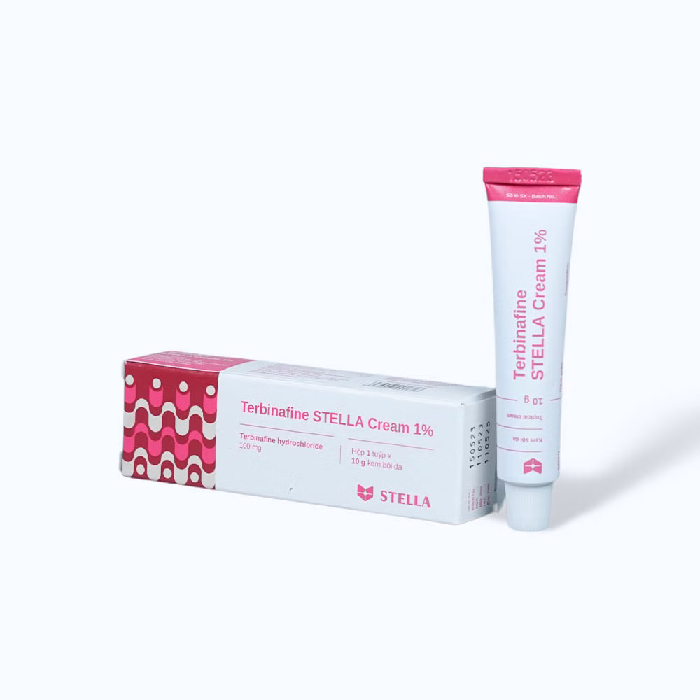 Terbinafin Stella 1% là một loại thuốc bôi ngoài da chứa terbinafin, được dùng để điều trị các nhiễm nấm trên da như nấm móng, nấm da, và nấm ở các khu vực khác trên cơ thể. Thuốc hoạt động bằng cách ức chế sự phát triển của nấm, từ đó giúp làm giảm triệu chứng và loại bỏ nhiễm trùng.