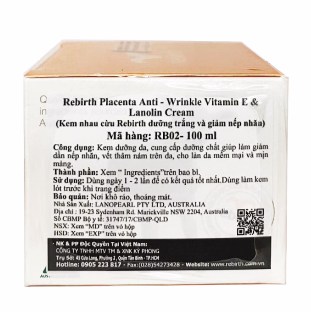 Kem dưỡng REBIRTH Placenta Anti- Wrikle Vitamin E & Lanolin Dưỡng Da và Giảm Dần Nếp Nhăn (100ml) là gì?