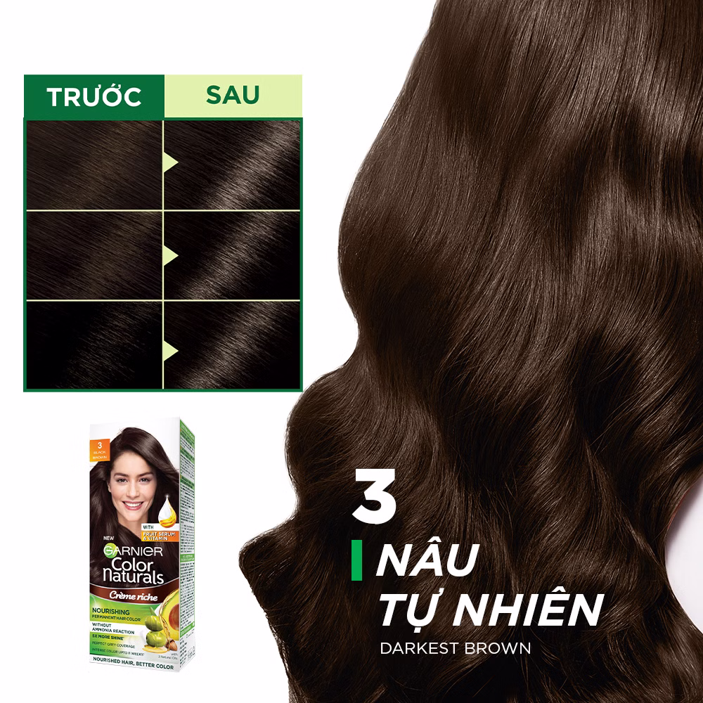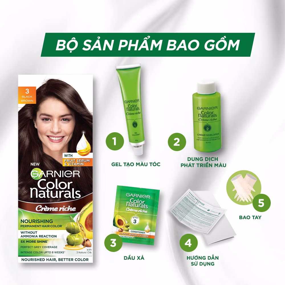Kem Nhuộm Tóc Garnier Màu 3 Nâu Đen (50g+50ml+5g/Hộp)