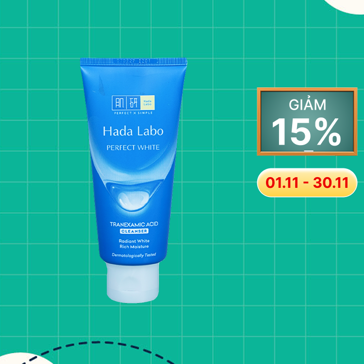 Kem Rửa Mặt Hada Labo Dưỡng Da Sáng Mịn Ẩm Mượt 80g là sữa rửa mặt thuộc dòng dưỡng sáng da Perfect White của Hada Labo, với công thức dạng kem tạo bọt mềm mịn, giúp len lỏi sâu vào lỗ chân lông và làm sạch sâu da một cách dịu nhẹ, đồng thời dưỡng da sáng mịn, ẩm mượt nhờ các thành phần T.X.A, Vitamin C, E, Hyaluronic Acid và chiết xuất hạt ý dĩ, mang lại cho bạn làn da rạng rỡ và đều màu hơn mỗi ngày.