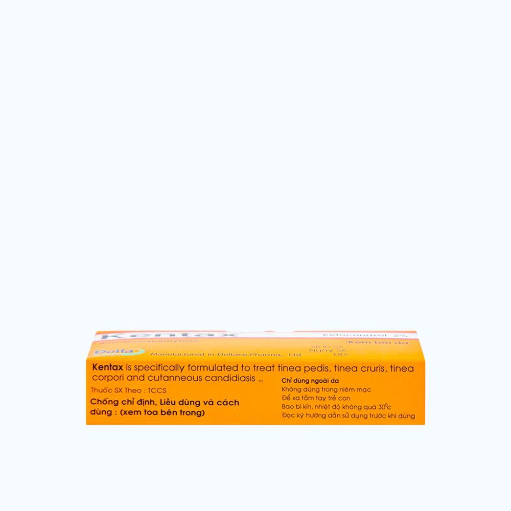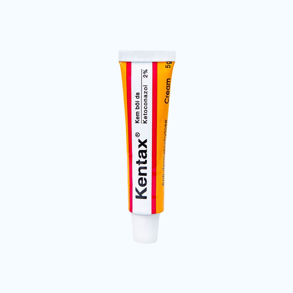 | Mô tả ngắn | Kentax 5g của Công ty TNHH Dược phẩm DetaPham, thành phần chính ketoconazol dùng bôi ngoài da để điều trị lác (hắc lào), lang ben, lác biếng, nấm kẽ, nấm móng, nấm tóc và các bệnh nấm da và niêm mạc (Candida, Trichophyton, rutrum, T. mentagrophytes, Epidermophyton floccosum, Malassezia furfur,…). Đặc biệt kem Kentax có thể trị lành nấm candida ở da.
