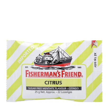 - Kẹo ngậm con tàu Fisherman’s Friend Citrus vị cam chanh dùng được cho mọi đối tượng từ 5 tuổi trở lên.