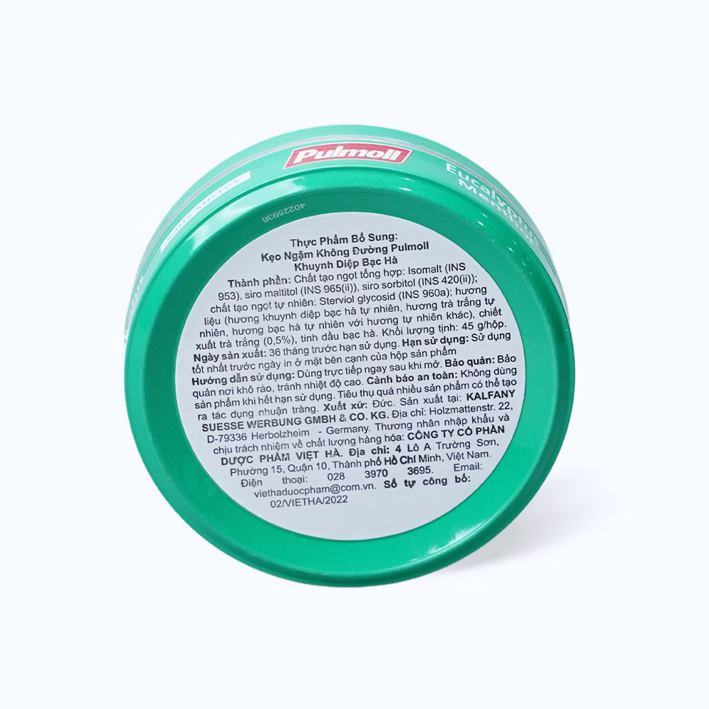 Thành phần Kẹo ngậm PULMOLL không đường vị bạc hà hộp (45g)