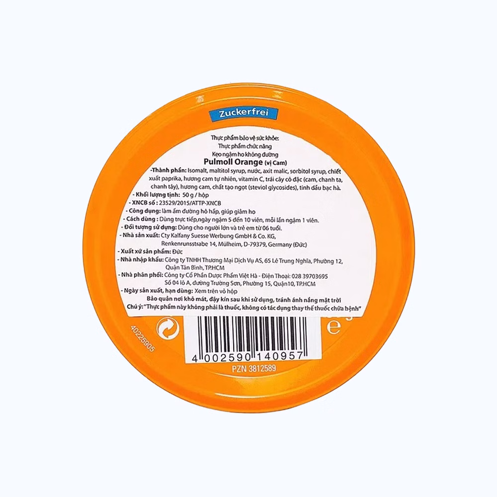 Thành phần Kẹo ngậm PULMOLL không đường vị cam hộp (45g)