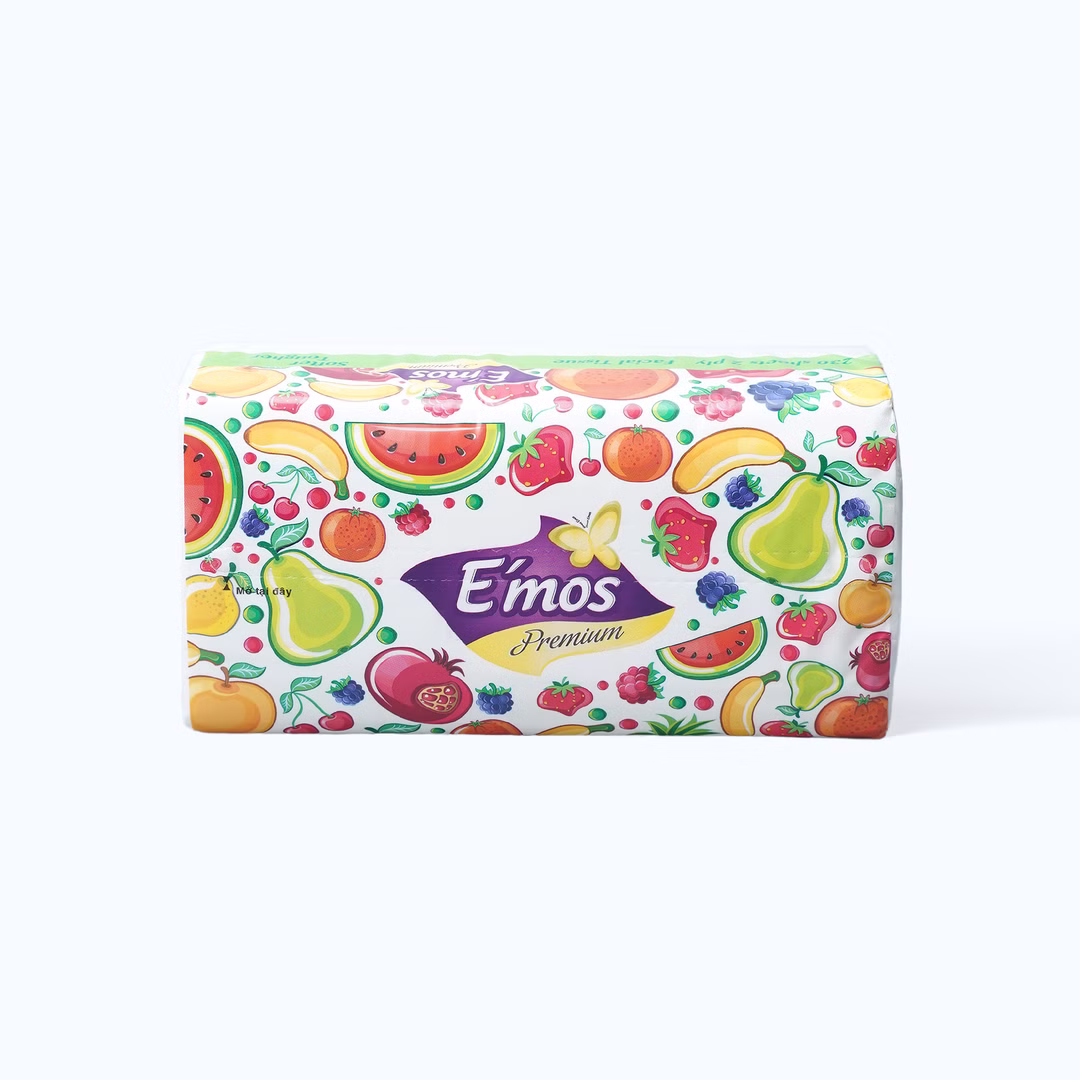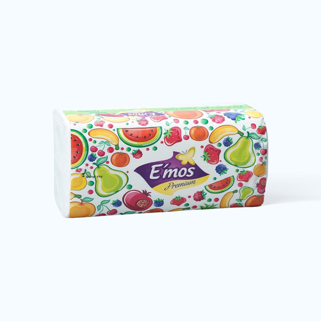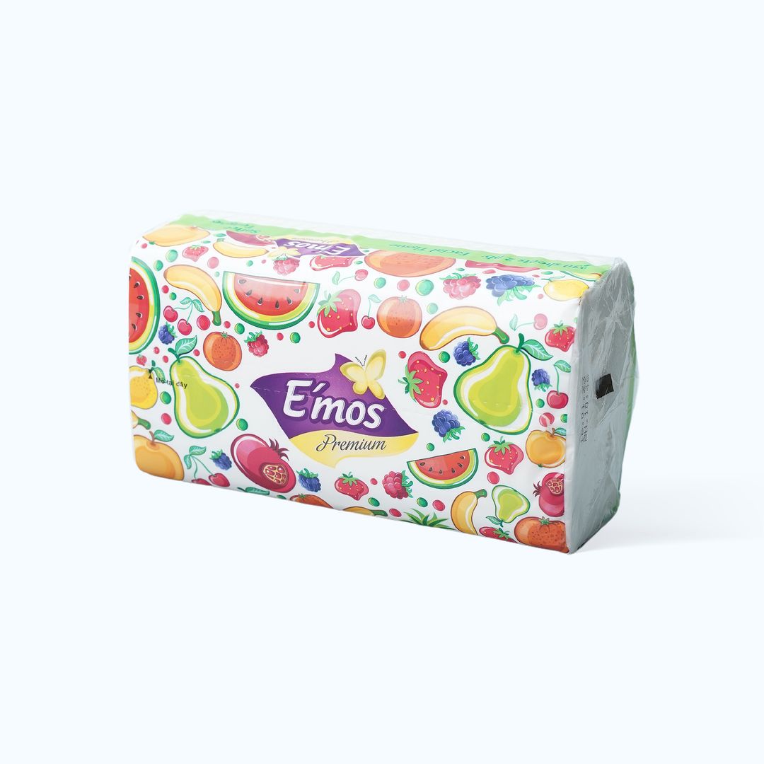 Khăn giấy EMOS rút 2 lớp hoa quả 24mmlà loại khăn giấy mềm mịn, có thiết kế 2 lớp, thích hợp sử dụng trong các hoạt động hàng ngày như lau mặt, tay, và các bề mặt khác.