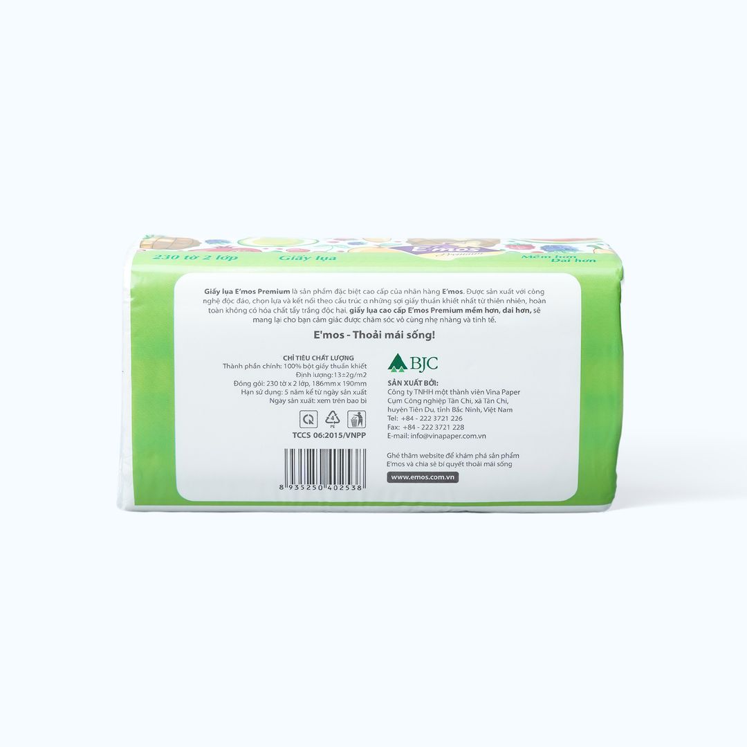 - Giấy lụa cao cấp E’mos Premium mềm hơi dai hơn, sẽ mang lại cho bạn cảm giác được chăm sóc vô cùng nhẹ nhàng và tinh tế.
