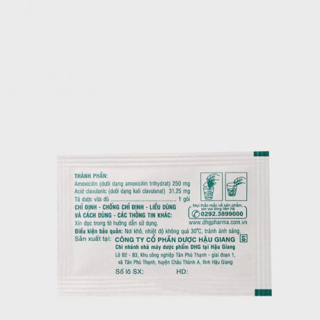- Acid clavulanic (dưới dạng kali clavulanat): 31,25 mg