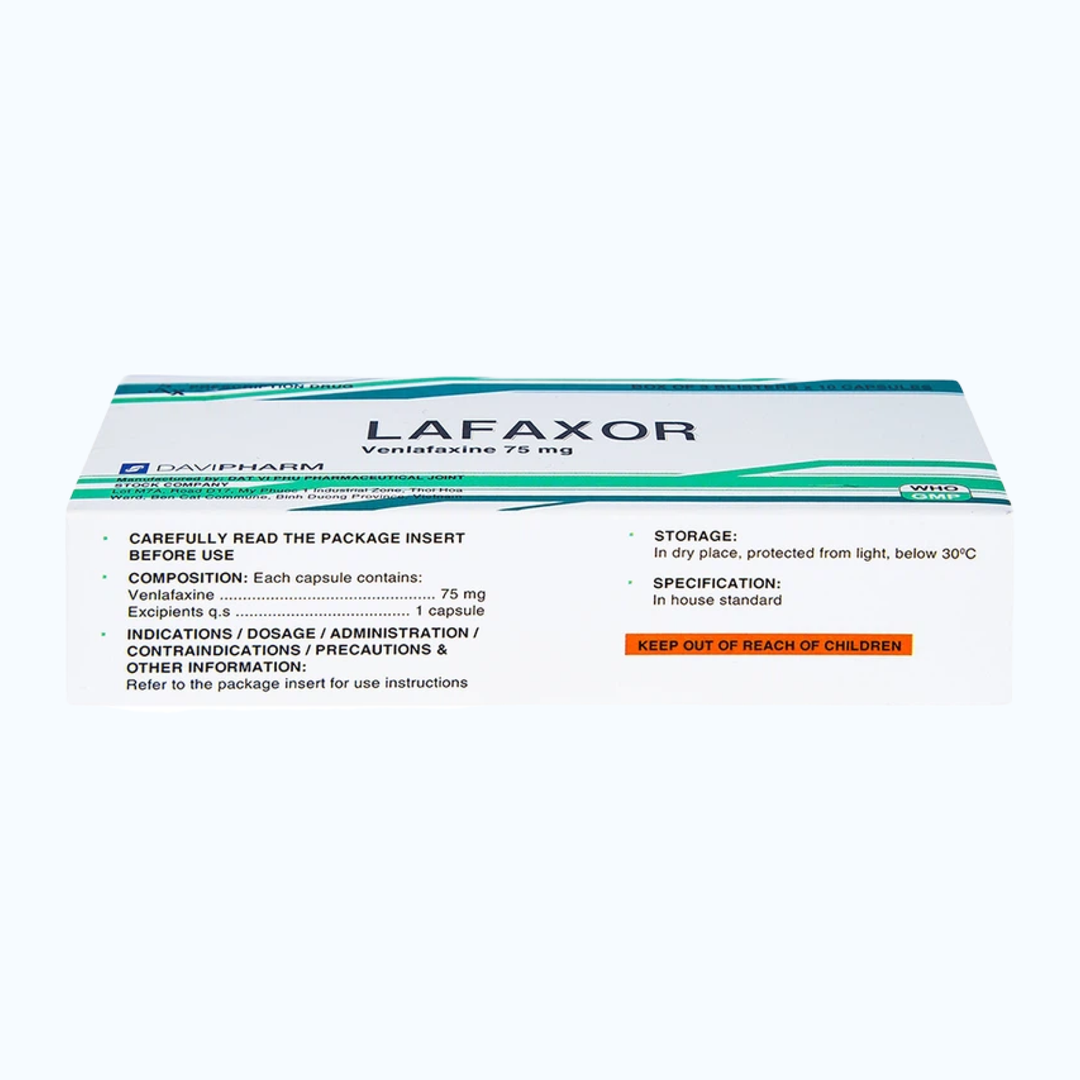 - Thuốc Lafaxor với dược chất chính là venlafaxin, được chỉ định để điều trị trầm cảm, gồm cả trầm cảm kèm theo lo lắng, cho bệnh nhân nội và ngoại trú.