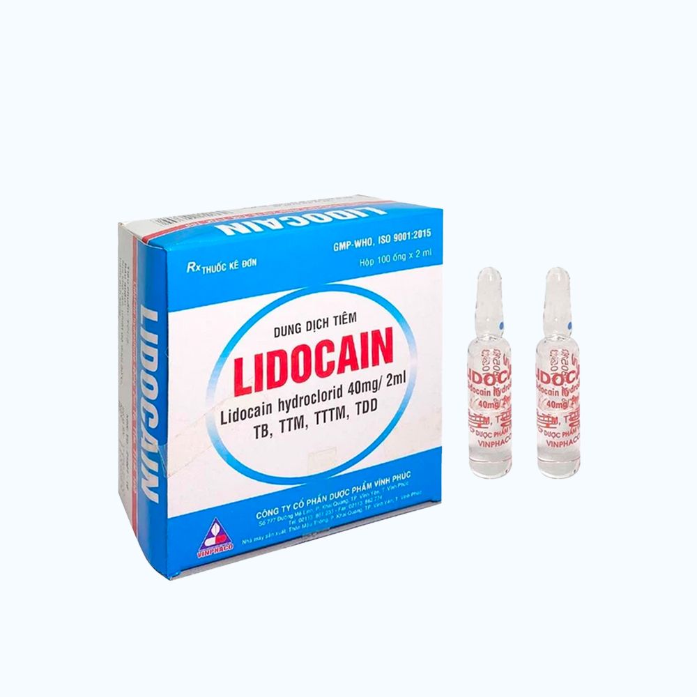 Lidocain 40 mg/2 ml là thuốc dạng dung dịch tiêm được sản xuất bởi Công ty Cổ Phần Dược Phẩm Vĩnh Phúc và được chỉ định trong nhiều thủ thuật, phẫu thuật cần gây tê và phục vụ cho các mục đích gây tê khác nhau.