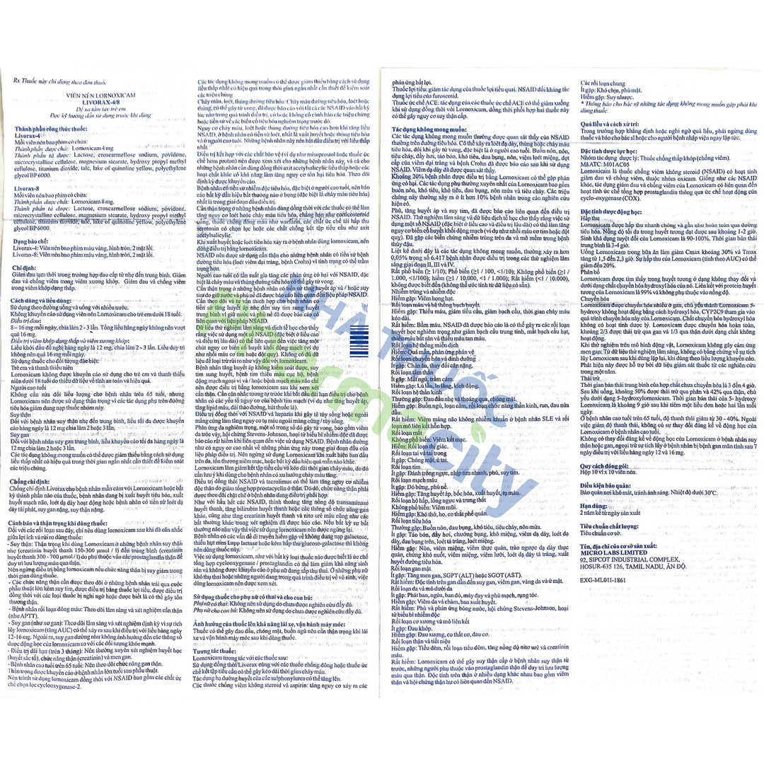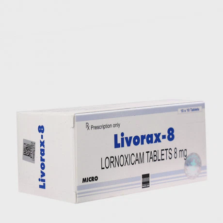 Livorax 8 được sản xuất bởiMicro Labs Limited(Ấn độ) có thành phần chính là Lornoxicam dùng trong các trường hợp giảm đau tạm thời mức độ nhẹ đến trung bình.