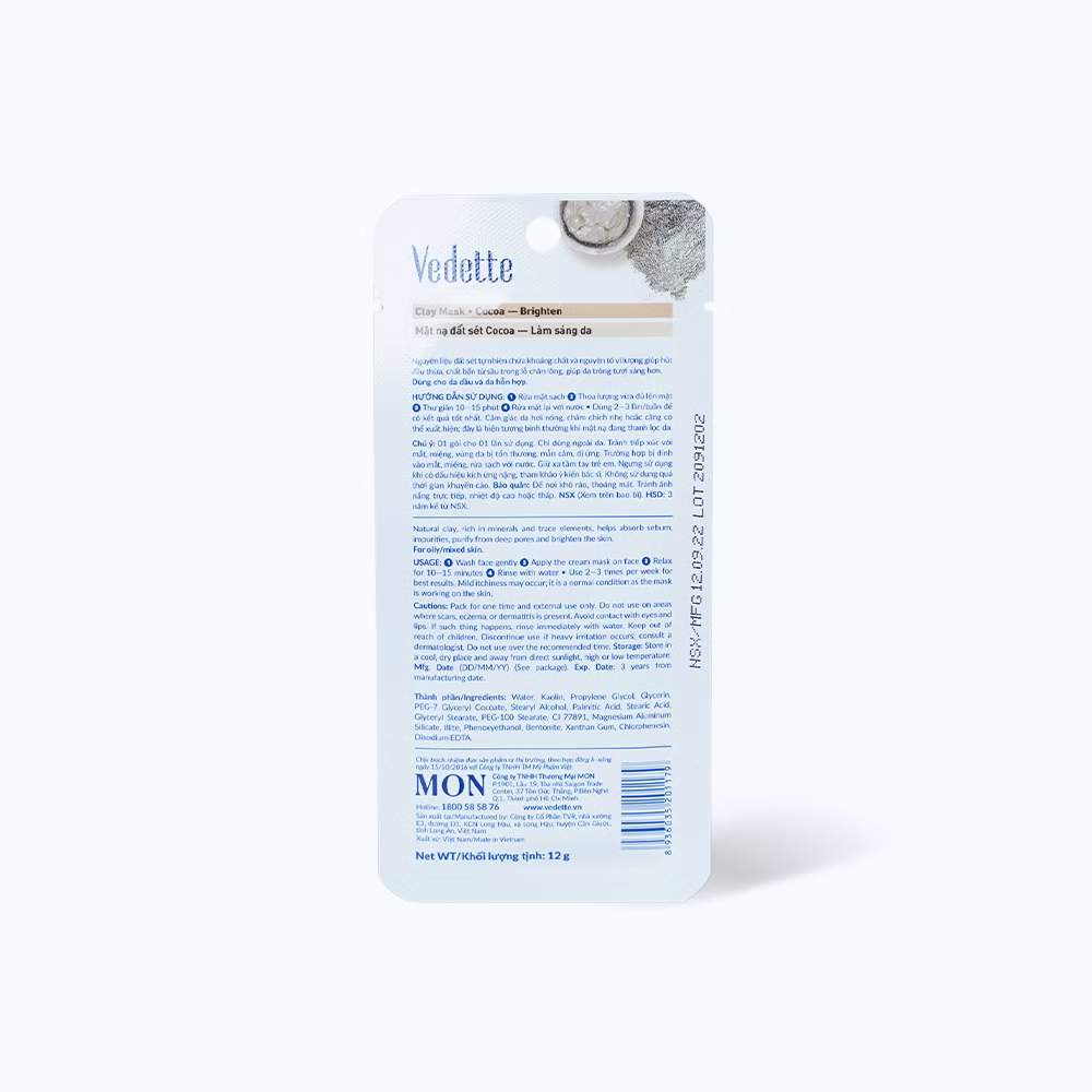 Thành phần Mặt Nạ Đất Sét VEDETTE Cocoa