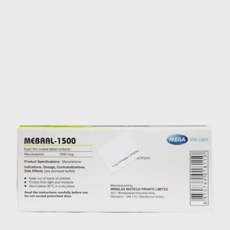 Mebaal 1500 Mega 3 x 10 của công ty Windlas Biotech Ltd. sản xuất, do công ty Mega Lifesciences Public Company Limited đăng ký phân phối. Đây là thuốc dùng để điều trị các bệnh lý thần kinh ngoại biên như bệnh thần kinh do tiểu đường, bệnh thần kinh do rượu, bệnh thần kinh do thuốc, đau dây thần kinh sinh ba và đau dây thần kinh nghề nghiệp, liệt Bells và thiếu máu hồng cầu to.