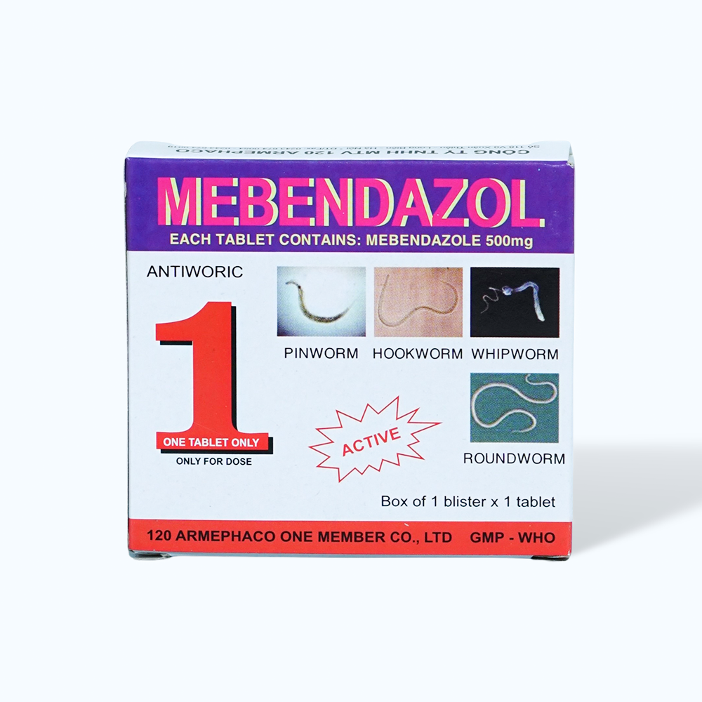 Viên nén Mebendazol 500mg điều trị nhiễm giun (1 vỉ x 1 viên)