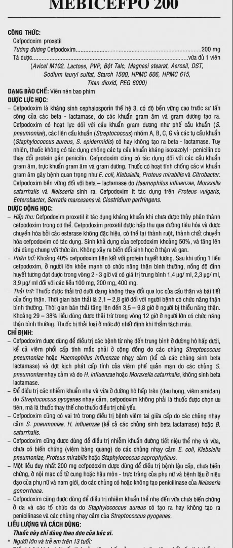 Cefpodoxim (dưới dạng Cefpodoxim proxetil) 200mg