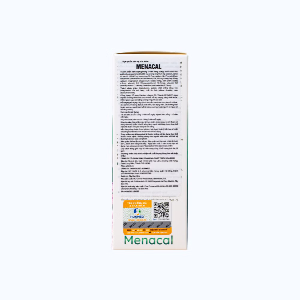 Thành phần hàm lượng trong 1 viên nang cứng: muối canxi của acid orthophosphoric 225,989 mg tương đương 66,7 mg canxi, canxi từ san hô 166,667 mg tương đương 56,7 mg canxi, tảo Phymatolithon calcareum (Lithothamnion calcareum) 108,333 mg tương đương 35 mg canxi, magnesium (magnesium oxide) 50 mg, kẽm (kẽm oxit) 4,2 mg, vitamin D3 (Cholecalciferol) 16,7 mcg, vitamin K2 (menaquinone-7) 196 mcg, Selenium (natri selenite) 6,75 mcg.