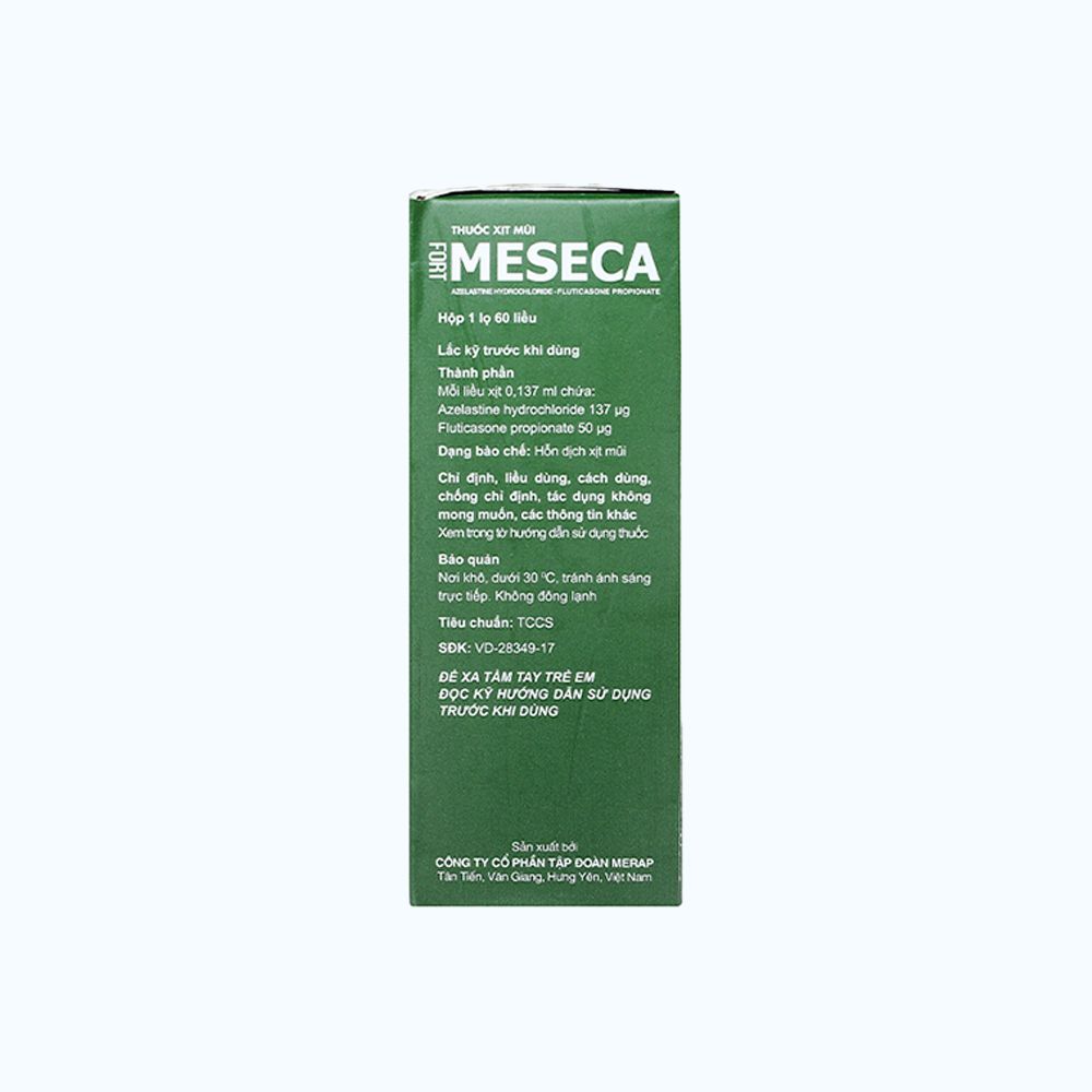 Meseca Fort được chỉ định dùng để làm giảm các triệu chứng của viêm mũi dị ứng theo mùa và viêm mũi quanh năm ở người lớn và trẻ em từ 6 tuổi trở lên, những đối tượng cần điều trị với cả azelastine hydrochloride và fluticasone propionate.