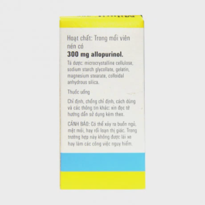 – Hoạt chất: Trong mỗi viên nén có 300mg allopurinol.