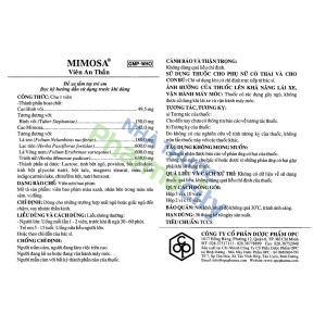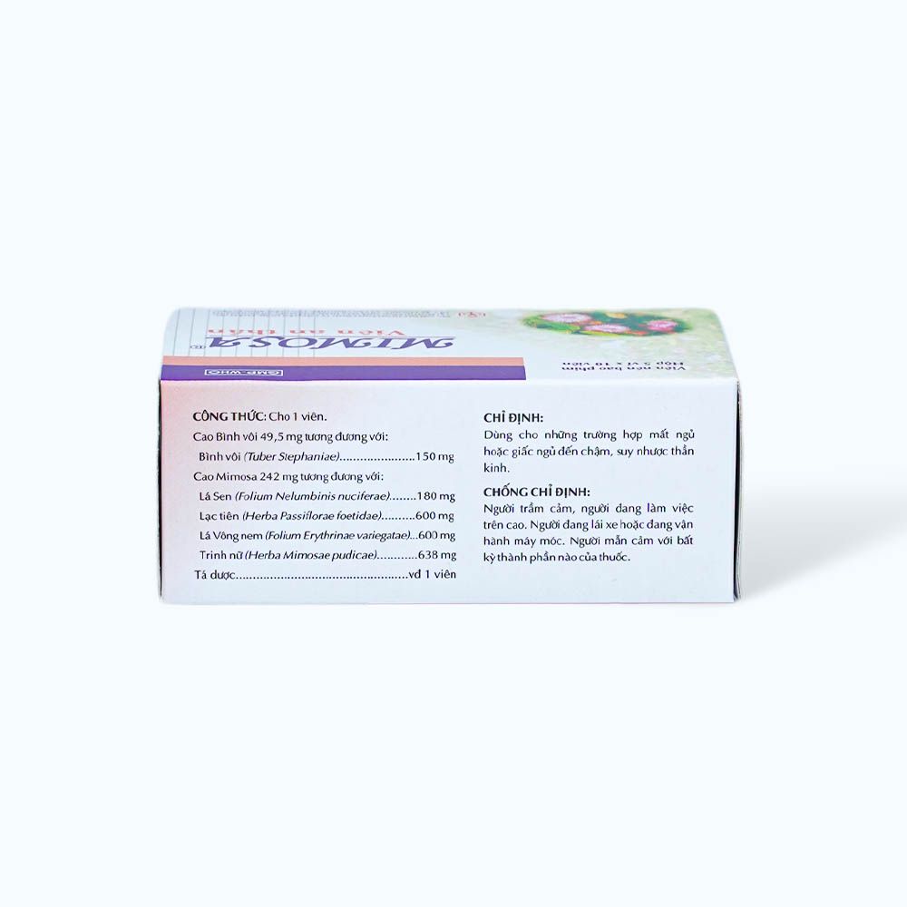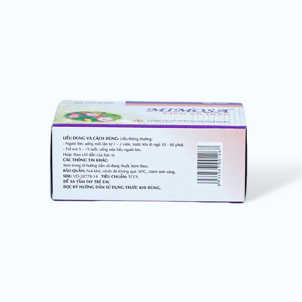 Viên nén Mimosa là sản phẩm hỗ trợ điều trị các vấn đề về giấc ngủ như khó ngủ, mất ngủ, ngủ không sâu giấc, cũng như các triệu chứng của suy nhược thần kinh. Thuốc có nguồn gốc từ thảo dược, mang đến giấc ngủ tự nhiên và cải thiện chất lượng cuộc sống.