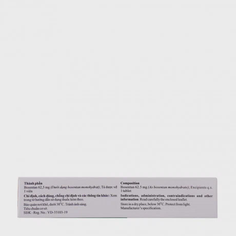 Bosentan (dưới dạng Bosentan monohydrat)…………62,5 mg