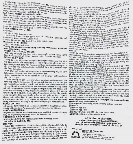 Thời gian dùng: Không dùng paracetamol quá 10 ngày ở người lớn hoặc quá 5 ngày ở trẻ em khi tự ý điều trị giảm đau hoặc hạ sốt.