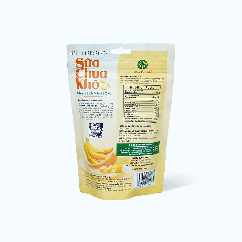 Sữa tươi nguyên chất, chuối cau tươi, đường, men khô (Lactobacillus acidophilus, Streptococcus thermophilus, Lactobacillus bulgaricus).