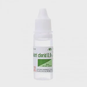 Natri clorid 0,9% là dung dịch đẳng trương được dùng rửa mắt và được dùng nhỏ mũi để giảm những triệu chứng như nghẹt mũi, chảy mũi, viêm mũi do dị ứng.