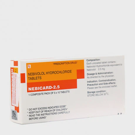 Viên nén Nebicard 2,5mg là một loại thuốc điều trị các bệnh tim mạch, thuộc nhóm thuốc chẹn beta. Thành phần chính của thuốc lànebivolol, một beta-blocker thế hệ mới, có tác dụng làm giảm nhịp tim, hạ huyết áp và cải thiện chức năng tim. Nebivolol cũng có tác dụng làm giãn mạch nhờ tăng sản xuất nitric oxide trong mạch máu, giúp cải thiện lưu thông máu và giảm áp lực lên tim.