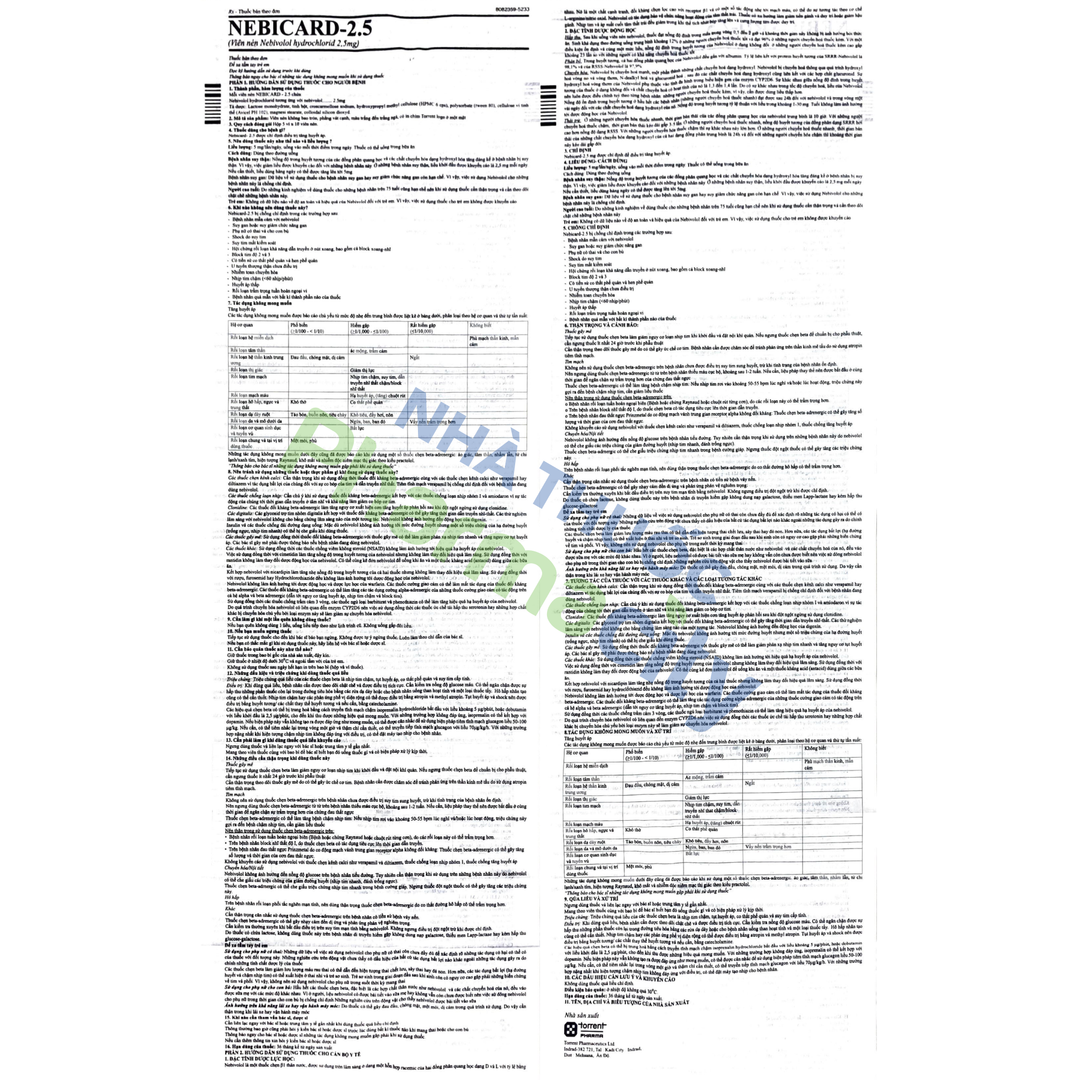 - Nebivolol hydrochlorid tương đương với Nebivolol 2.5mg.